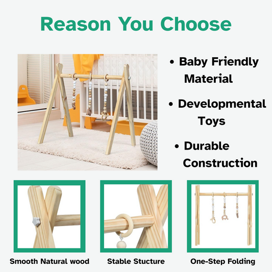 SmartPlay™ Wooden Baby Gym – Foldable, Stylish & Skill-Boosting