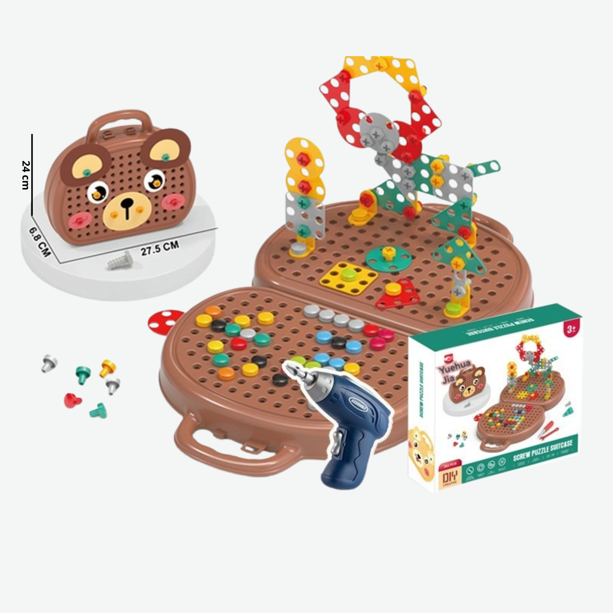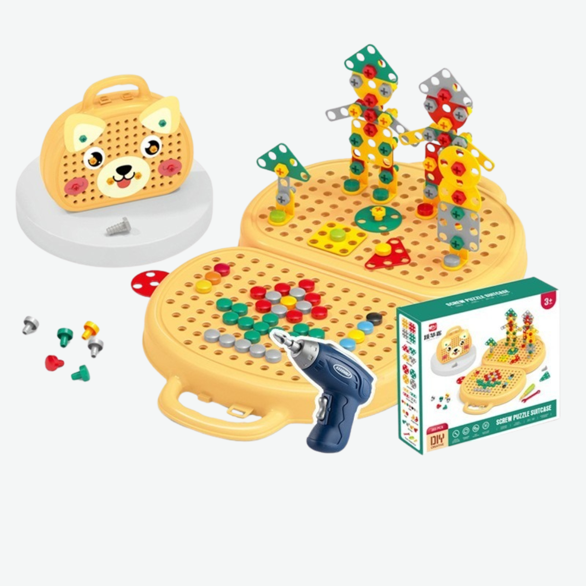 Door de boor en schroeven te gebruiken, ontwikkelen ze hand-oogcoördinatie en motorische vaardigheden.